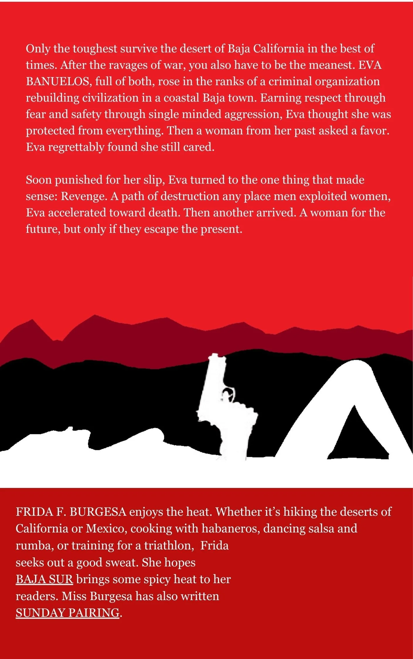 In Baja Sur, I wanted to explore the lawless West with a woman every bit the solitary gunslinger as the male figures of Westerns past. The future interests me more than the past, so instead of going back to the bad old days, how about imagining the conditions for a similar time to appear now? It’s not a stretch of the mind to picture a war across northern Mexico involving the drug cartels. As in all wars, the women trying to hold families and communities together, are visited with the greatest horrors. In Baja Sur, one woman, hardened by the fires and skilled in the tools of violence, faces the uncertain future of a rebuilt civilization.